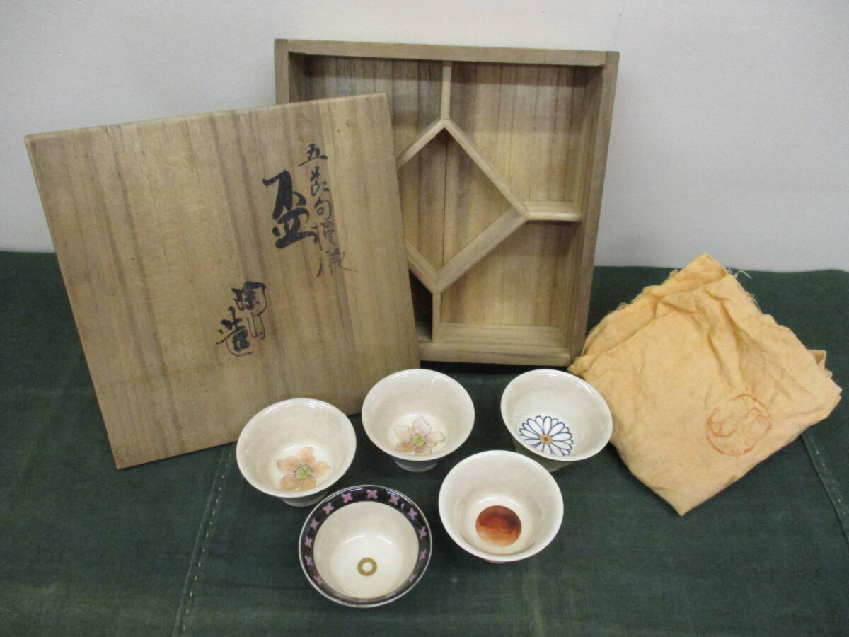 - 〈五節句模様盃 二代 伊藤陶山 作〉SE123 検/寄せ盃 酒器 ぐい呑 帝室技芸員 煎茶
