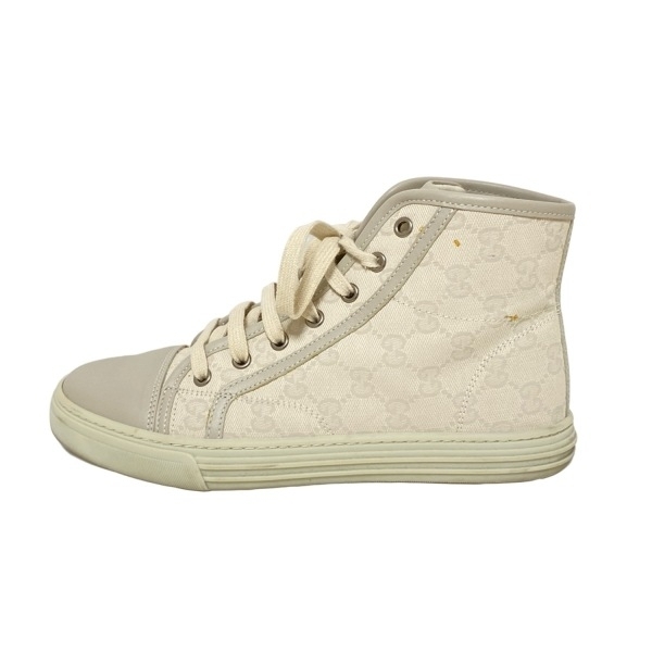 > グッチ GUCCI スニーカー 37 - レザー ライトグレー×アイボリー レディース GG柄/インソール取外し可/ハイカット 靴