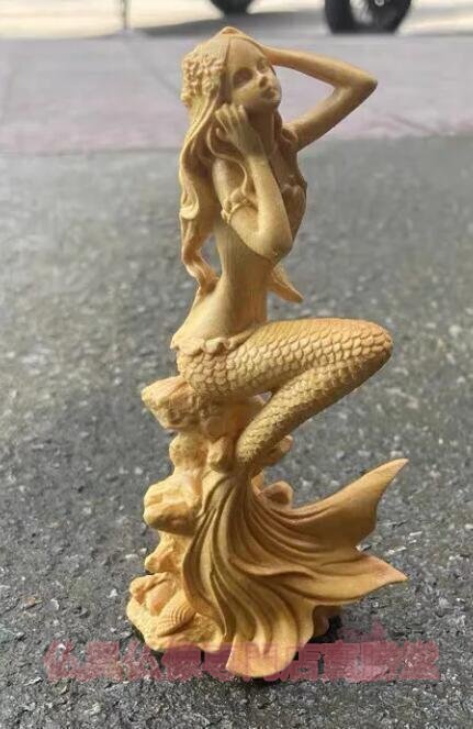 - 【寶勝堂】黄楊木彫り人魚姫置物実木彫刻