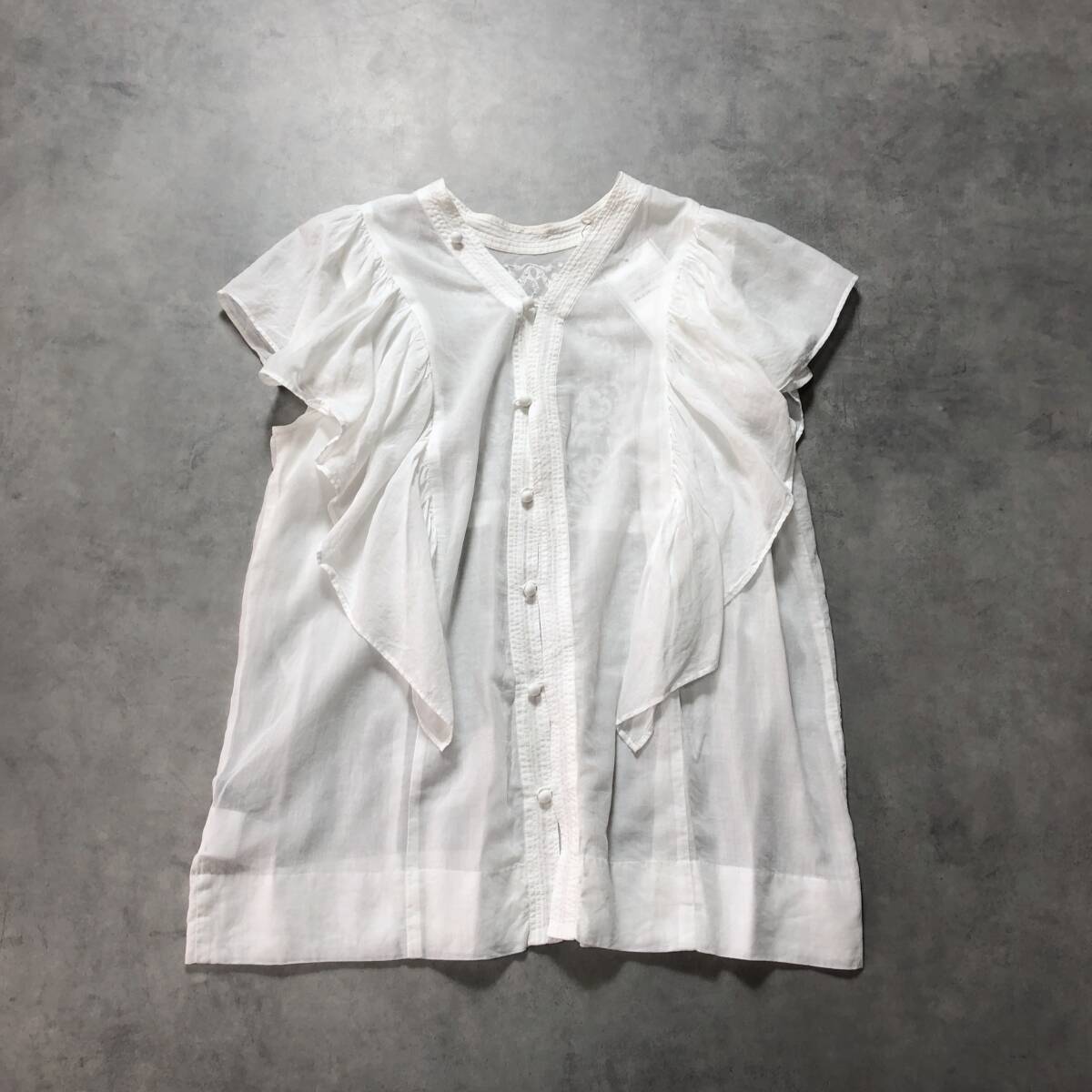 - WQ714●Unaca:フリルレース刺繍シアーブラウス ●38● 白 ノースリーブシャツ アナカ