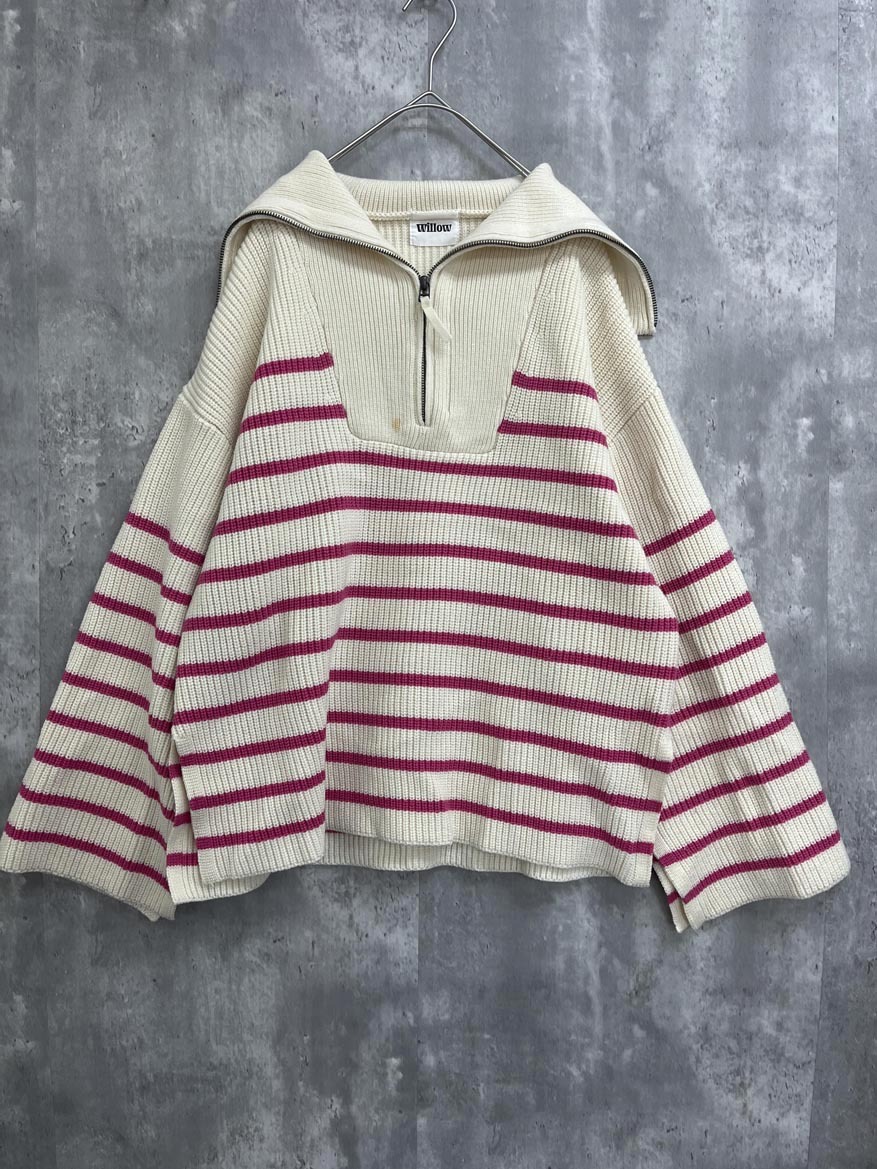 > willow ウィロウ TYZ1022405A0002 ボーダーセーラーZIPプルオーバー ニット セーター sizeONE/アイボリー×ピンク ◆■ ☆ fib2 レディース