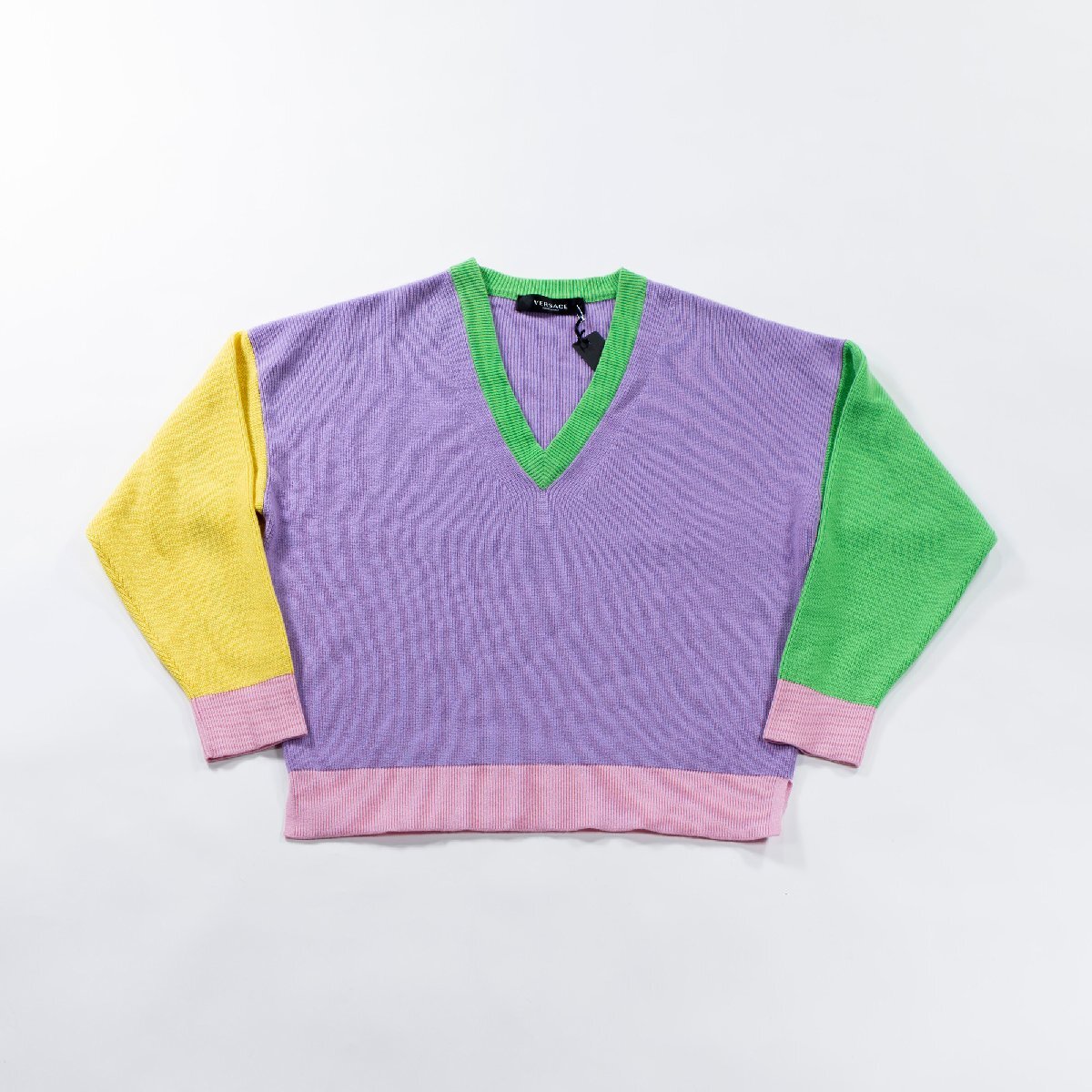 > ヴェルサーチ VERSACE マルチカラー Vネックニット ◆新品未使用品◆ イタリア製 カシミヤ ドロップショルダー レディース ユニセックス