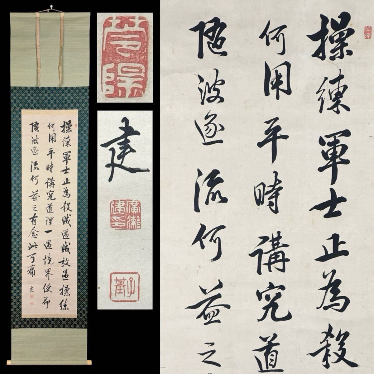 - 【模写】 廣瀬 淡窓 (建) 三行書 掛軸 紙本 肉筆 漢詩 書道 書画 時代品 合箱