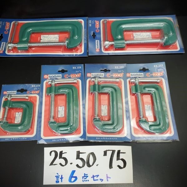 - 【アウトレット品】 ソマックス C-クランプ 25、50、75㎜ 計6点セット 日曜大工 鉄工 接着作業 木工 シャコ万力 クランプ sp-031-475