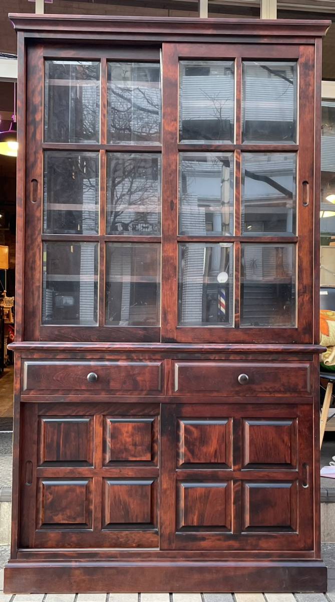 - 【No.68】北海道民芸家具 食器棚 飾り棚 キャビネット 樺無垢材 和家具 和モダン 古民家 2段セパレ-ト 天然木 レトロ