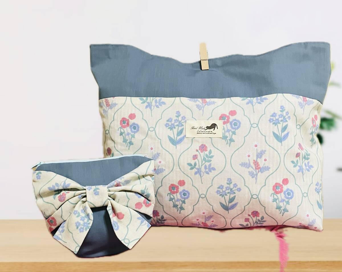 - ハンドメイド☆花柄トートとリボンのポーチセット☆