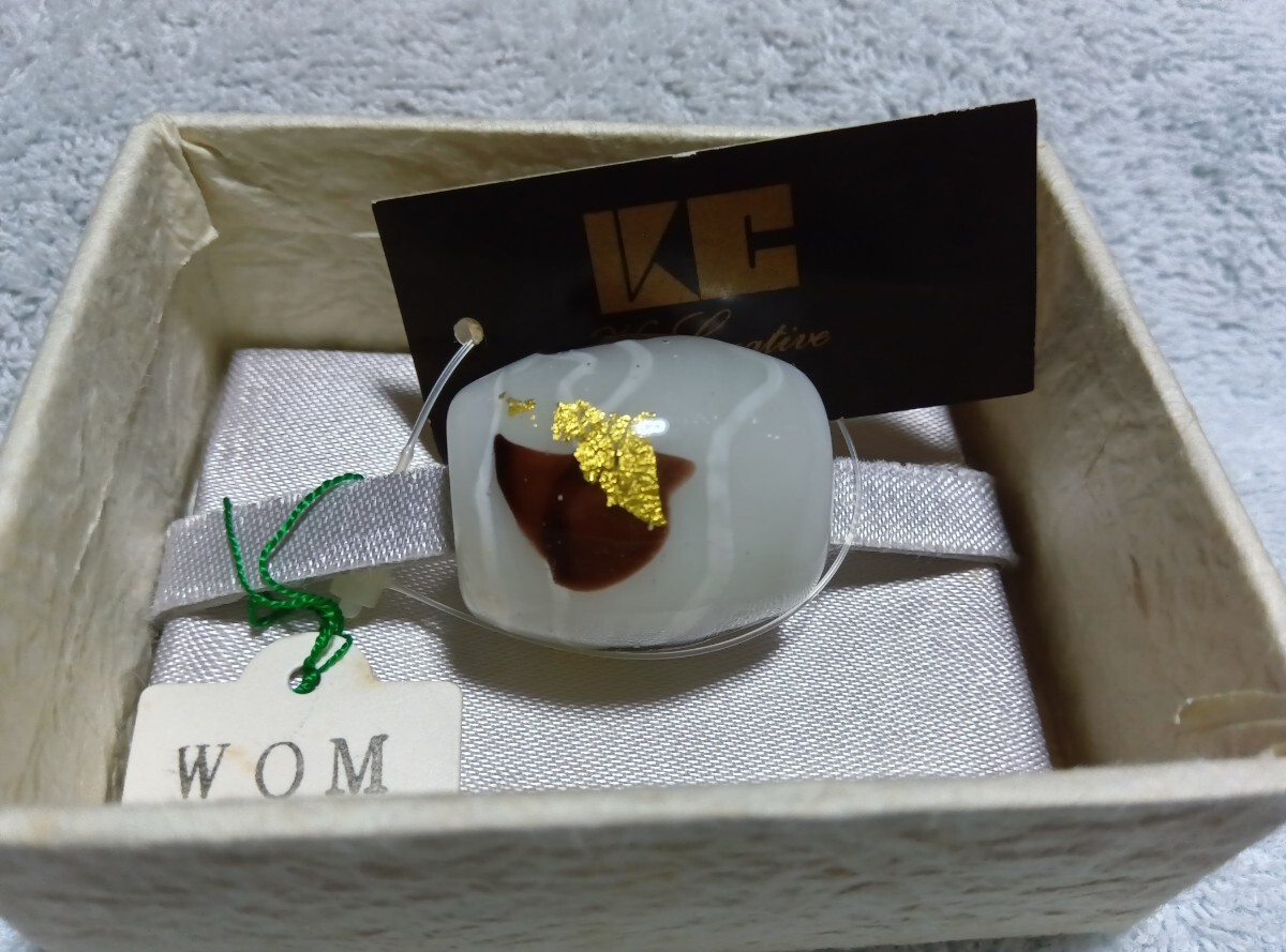 - 金の鈴 帯留め 手吹きガラス トンボ玉風 未使用 上代12000円