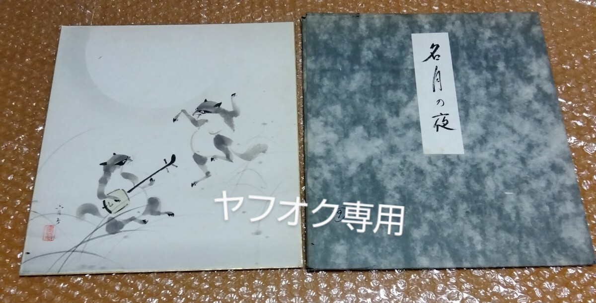 - □浅野鶴汀【名月の夜(狸囃子)】鳥獣戯画 版画 色紙画 タトウ・栞付き