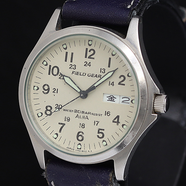 - 稼動 セイコー アルバ フィールドギア V743-8000 QZ ベージュ系文字盤 デイデイト レディース腕時計 KTR 2000000 NSK