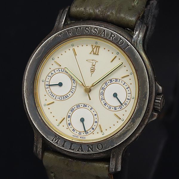 > 稼動 トラサルディ QZ TRS-2109 ラウンド トリプルカレンダー アイボリー文字盤 メンズ腕時計 2000000 NSK MTM