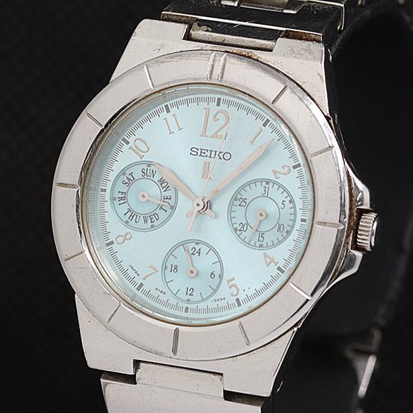 - 稼動 良品 セイコー ルキア 5Y89-0B3D デイデイト QZ ライトブルー文字盤 レディース腕時計 AOY 2000000 NSK