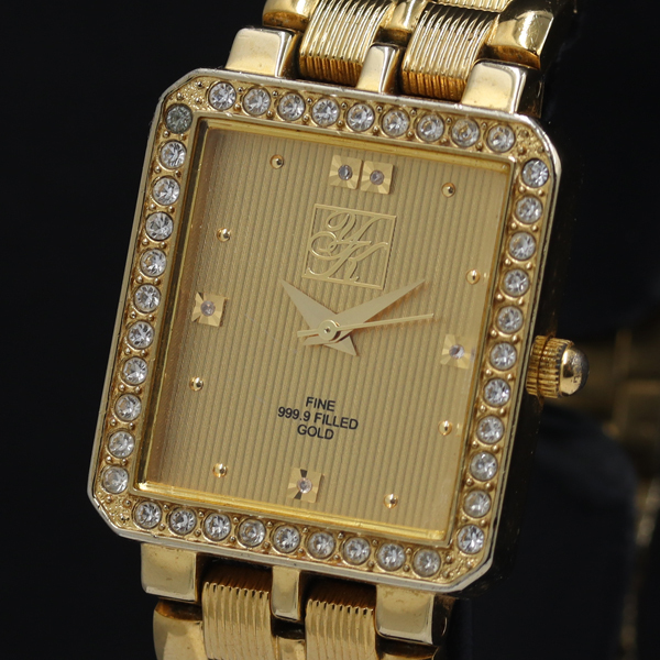 - 稼働 キミジマユキコ ストーンベゼル スクエア YK-328G FINEGOLD999.9 QZ ゴールド文字盤 メンズ/レディース腕時計 TKD 2000000 NSK