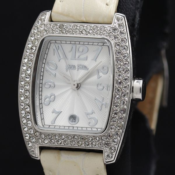- フォリフォリ 石付 デイト QZ シルバー文字盤 レディース腕時計 TKD 2000000 NSK