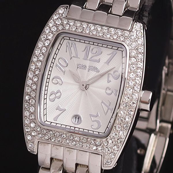 - 稼働 良品 フォリフォリ QZ WF5T081BD ストーンベゼル デイト スクエア シルバー文字盤 レディース腕時計 YSD