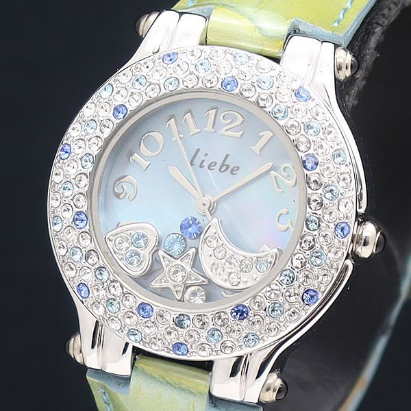 - 稼動 良品 リエベ QZ ダイアベゼル シェル文字盤 レディース腕時計 2000000 NSK MTM