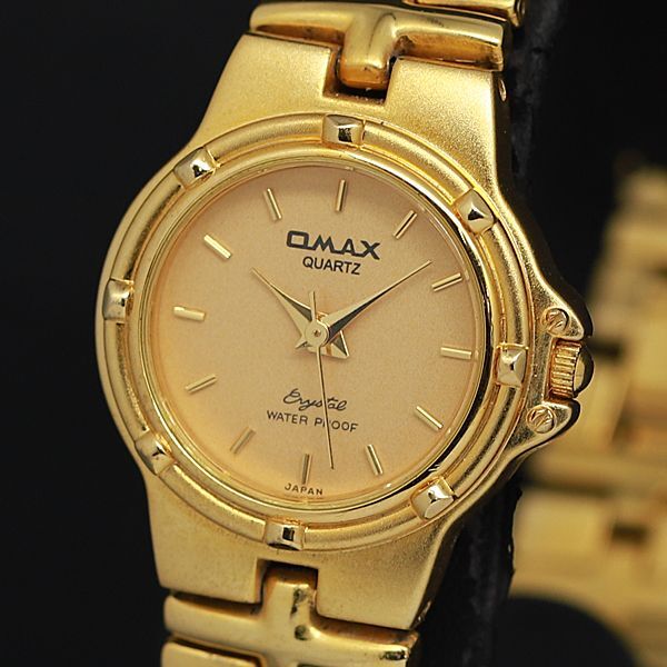 - 稼動 QZ 美品 オマックス クリスタル 1095 ゴールド文字盤 レディース腕時計 KRK 2000000