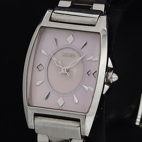 > 稼働 良品 セイコー ワイアード 1N01-0MD0 QZ ピンク文字盤 トノー型 石付 2P レディース腕時計 OSW 2000000 NSK