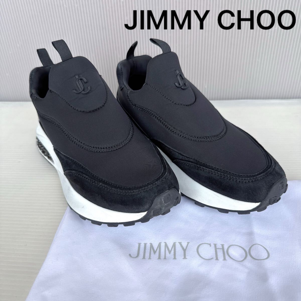 > JIMMY CHOO JC ロゴ ジミーチュウ メンフィス ネオプレン 厚底 ローカット スニーカー スリッポン 美品 レーディス 靴 フラットシューズ 35