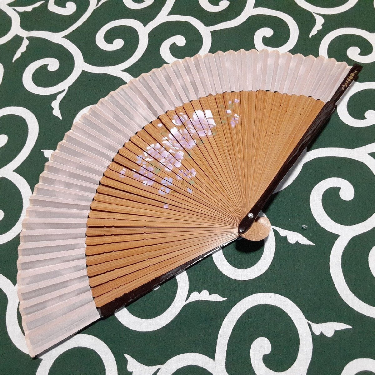 - 送料無料)竹製 花柄 縦幅21cm 古扇子 A32099