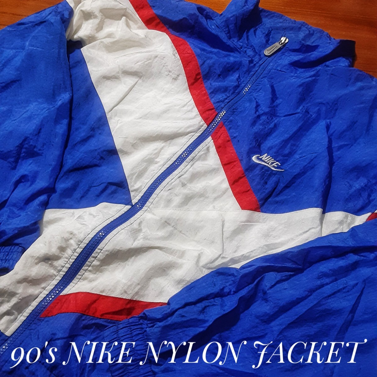 - 最値!90'sヴィンテージ!銀タグ!完成型オーバーシルエット!ナイキ ナイロン ブルゾン ジャケット!刺繍ロゴ入り!希少廃盤!ブルー!青赤白 M位
