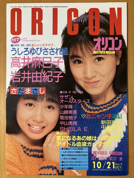 - ★オリコン 1985/10/21 うしろゆびさされ組 斉藤由貴 ALFEE さだまさし JANGO 山口かおり 浜田麻里 中島みゆき 井浦秀知 宮里久美 岡本舞子