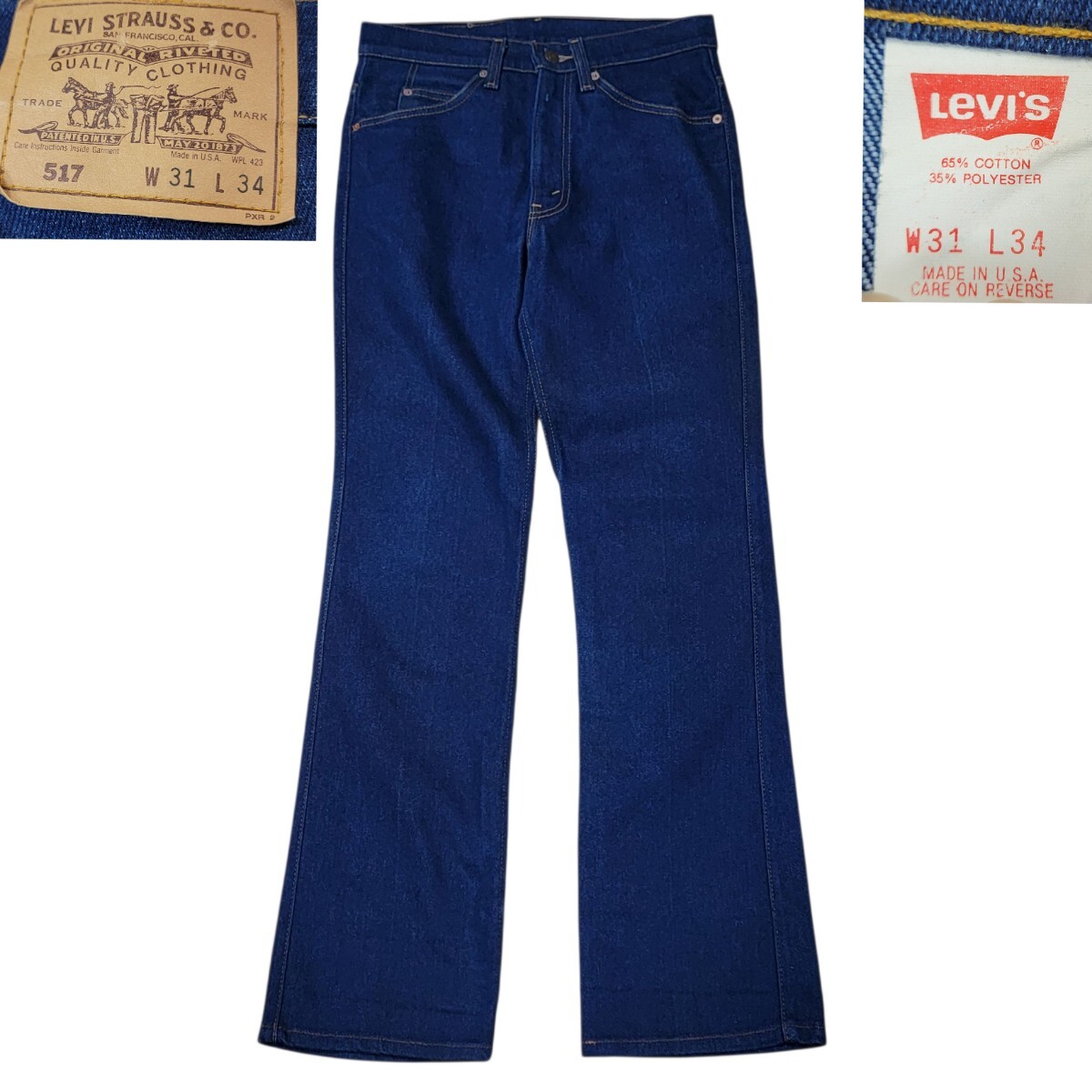 - ミント級 ストレッチ入り USA製 90S リーバイス Levi's 517 デニム W31 L34 フレアデニム ブーツカット ボタン裏刻印 515濃紺 サドルマン