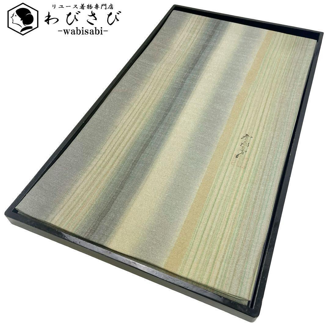 > 袋帯 斉藤三才 美しい染色 縦縞模様 グラデーション O-4249 着物 きもの kimono 和服 和装 中古 リサイクル着物 【送料無料】