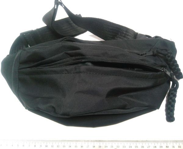 - 軽量ナイロンウエストバッグ ジッパー2つ コンパートメントクロスボディバッグスタイリッシュで丁度よい大きさ 全黒 ★鄭11 [丨1[丨3