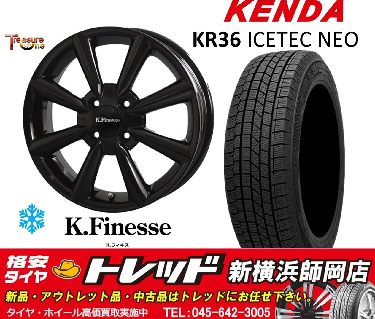 - 新横浜師岡店 現品限定新品アルミタイヤ4本SET K.Finesse KF08 15インチ4.5J 4穴100+45BK KENDA ICETEC NEO KR36 165/55R15 軽自動車