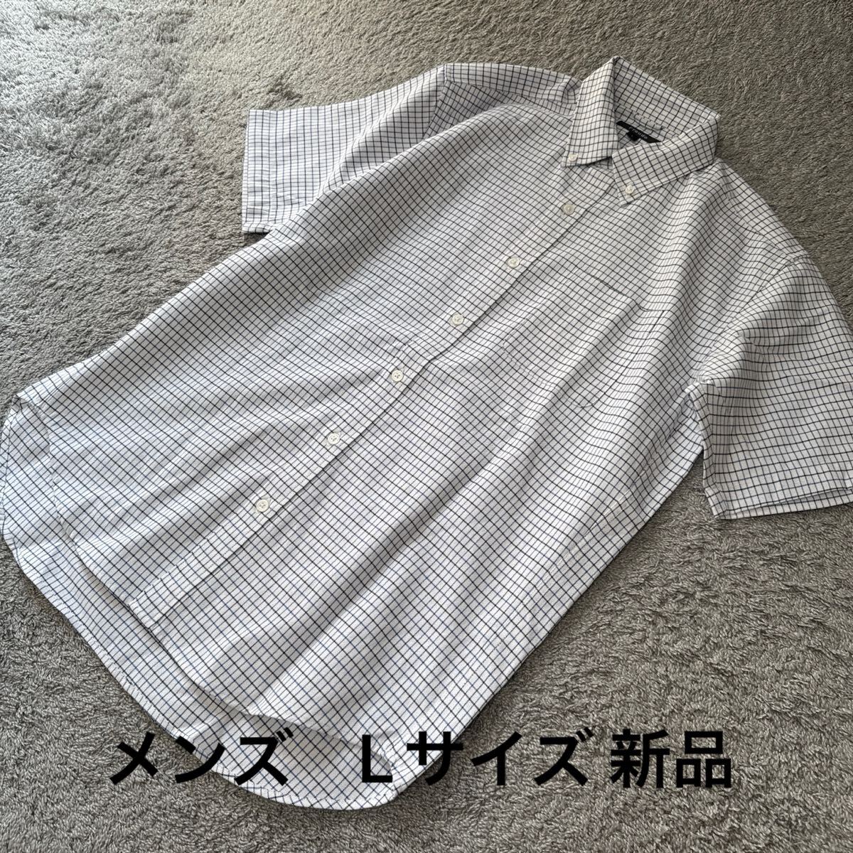 - メンズ 固めコットン生地ブルー系2色チェック半袖シャツL★ゆうパケット配送可能★新品21