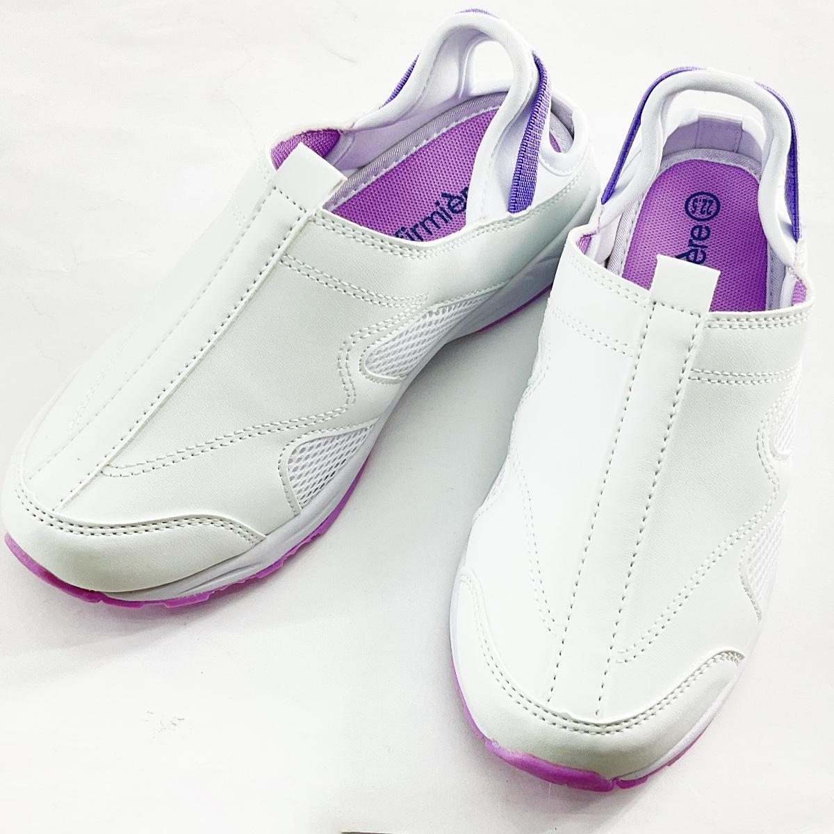- ナースクロッグ 2WAYスリッポンシューズ スポーツフィット バックバンド付き 22.5cm 幅広4E ホワイトxラベンダー