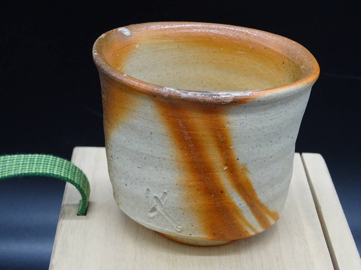 - 備前焼 人気実力作家 脇本博之(師:工芸会正会員 山下譲治)工芸会正会員★備前緋襷ぐいのみ 共箱、共布、陶歴付 茶道具