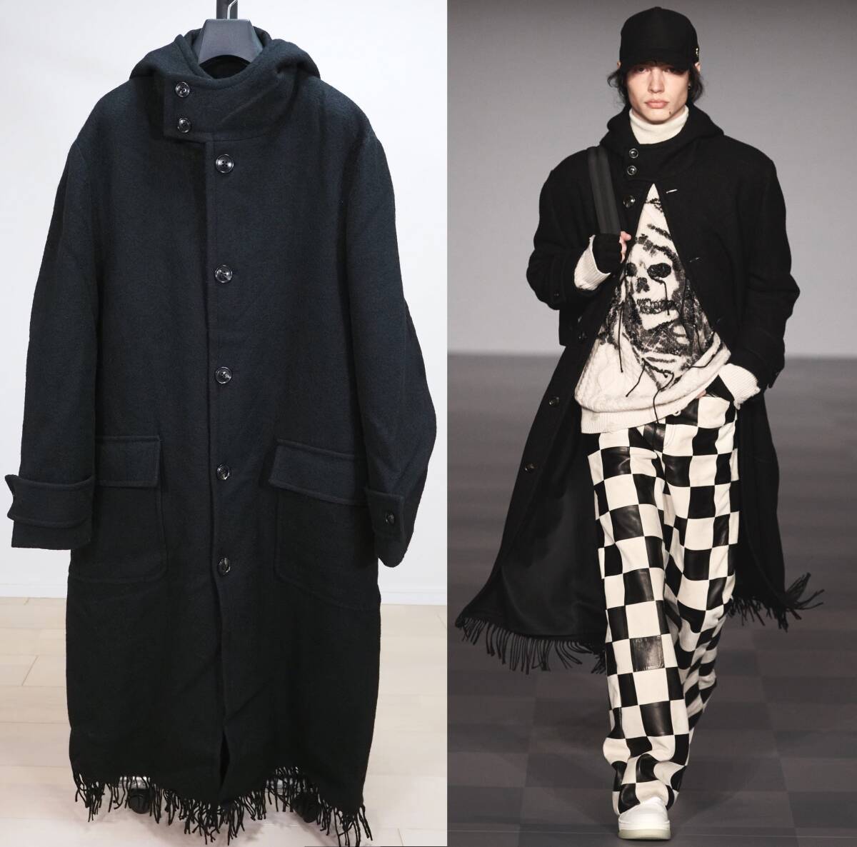 - AMIRI アミリ 22AW裾フリンジオーバーサイズフーデッドコート48黒 Italy製