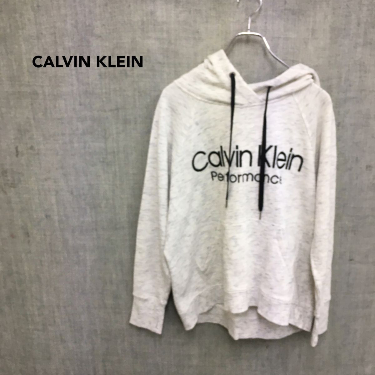 - 2K2027-O-N◆Calvin Klein カルバンクライン 長袖パーカー トレーナー フーディー 刺繍ロゴ フード紐◆sizeM ホワイト