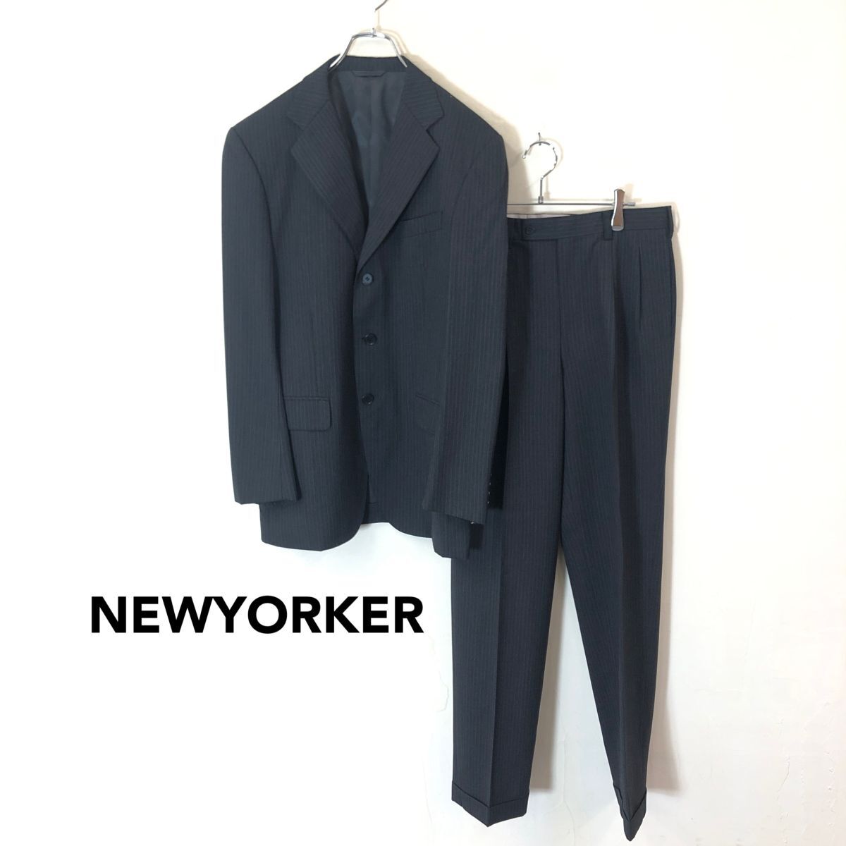 - 2K1899-O-S◆NEWYORKER ニューヨーカー スーツセットアップ テーラードジャケット 背抜き スラックス◆sizeA6 ブラック 毛