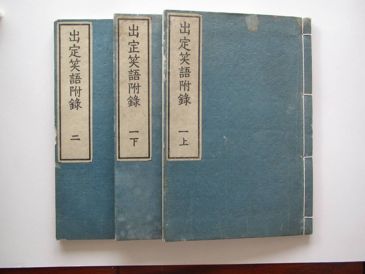 - 平田篤胤著「出定笑語附録」半紙本3冊揃い、文化14(1817)年序。仏教批判の書。袋付、虫損・書込みなし、状態良い。