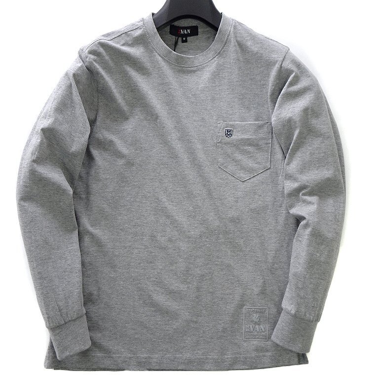 > 新品 ミスターヴァン 25年春夏 コットン ロゴ 長袖 Tシャツ M 灰 【va1751048_97】 MR.VAN メンズ ワンポイント 長袖 カットソー ロンT