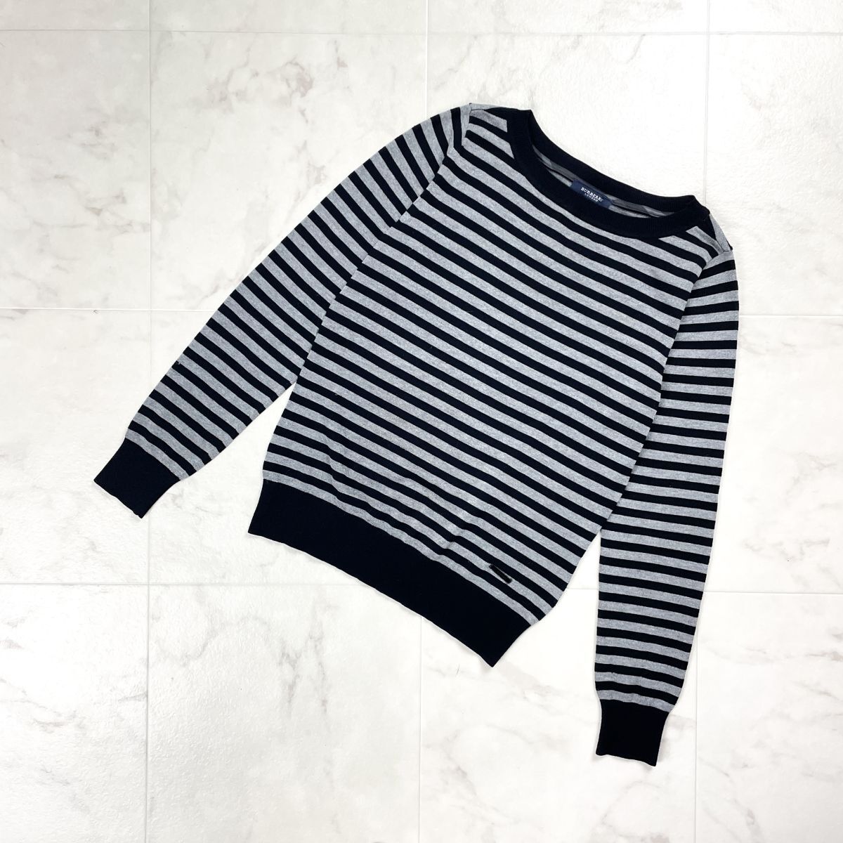 > 美品 BURBERRY LONDON バーバリーロンドン ボーダーラメニット 長袖セーター レディース 黒 ブラック グレー サイズ1*HD309