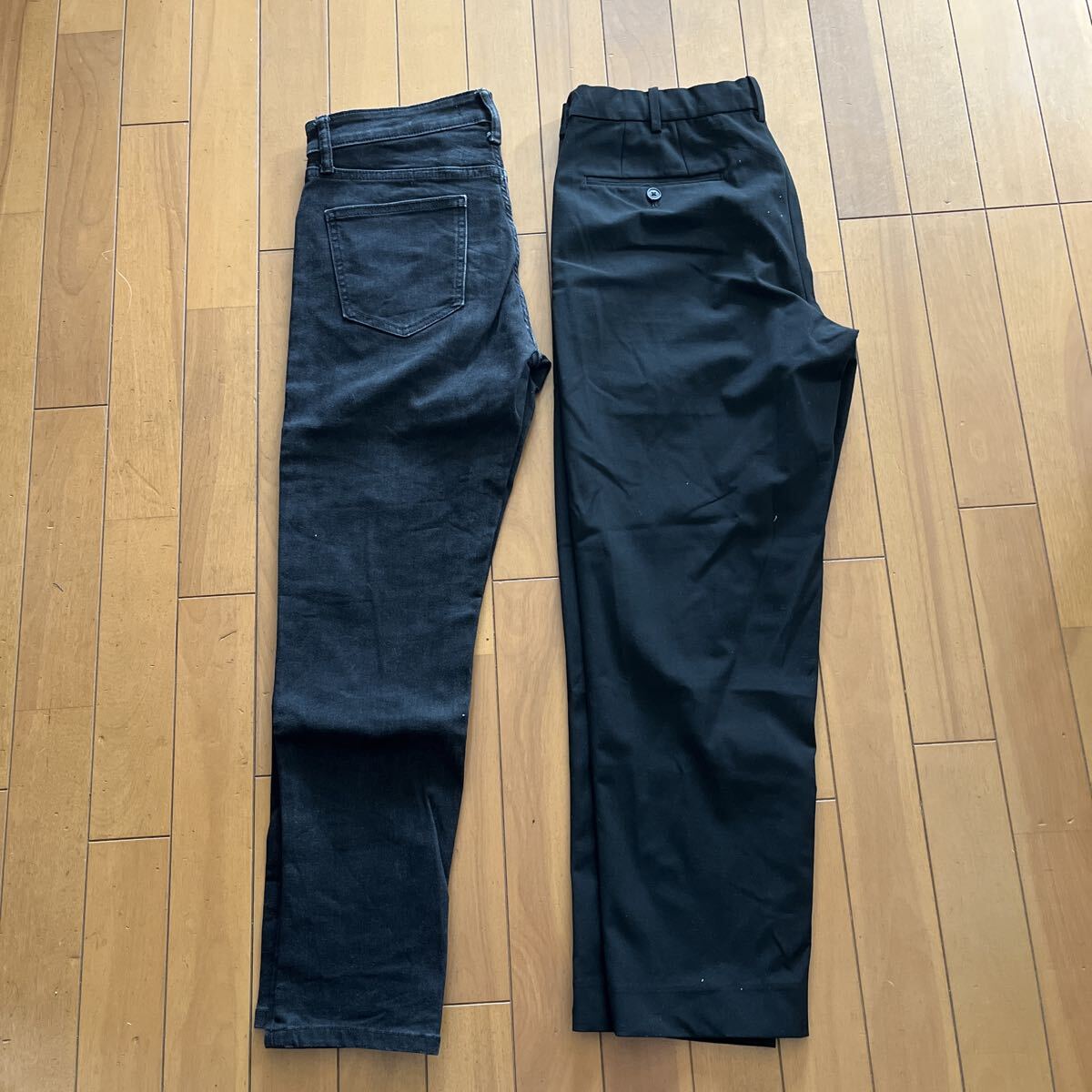 > お買得③★UNIQLO★ユニクロ 黒ブラック パンツ ウエスト76cm 生地違い まとめて 2本セット デニムジーンズ他 通勤通学にも