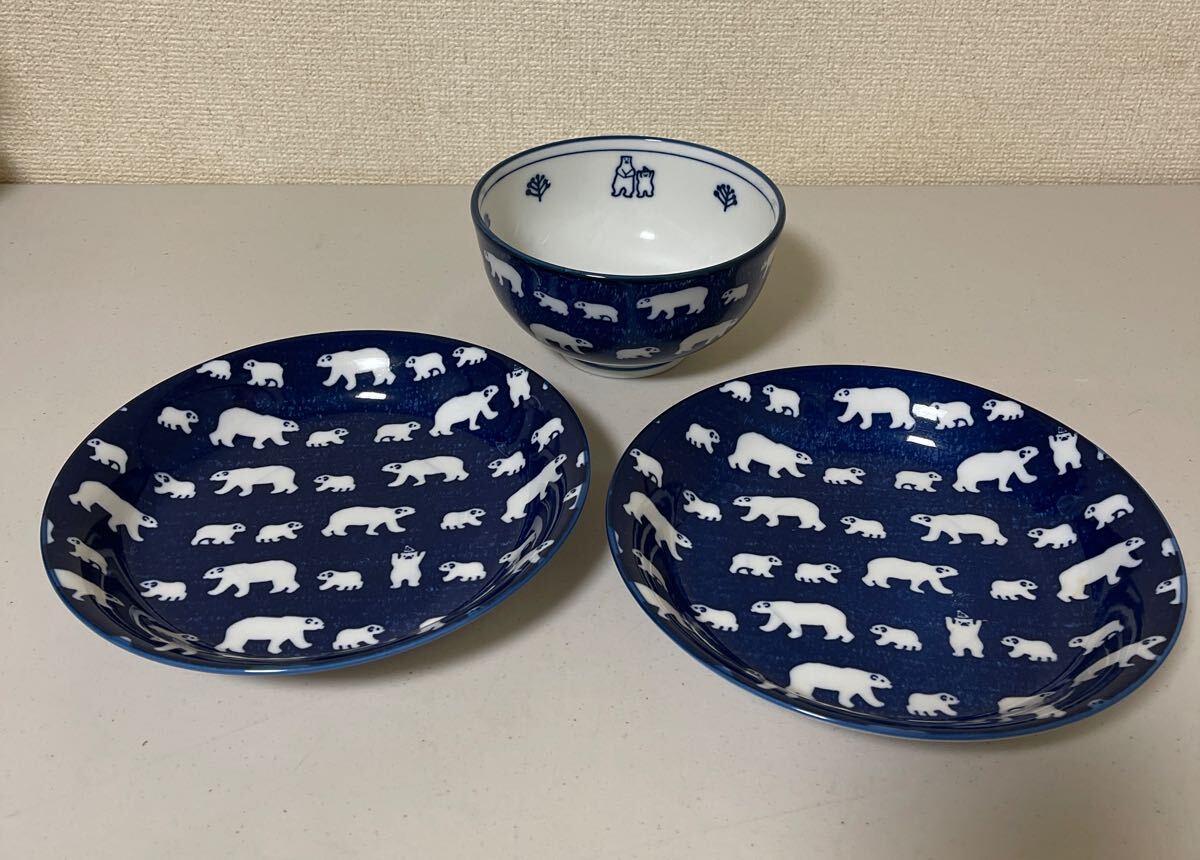 > 白くま みのる陶器 美濃焼 日本製 どんぶり(直径約15㎝ 高さ約8㎝)×1個 パスタ皿(直径約22㎝ 高さ約4㎝)×2個 14ー8