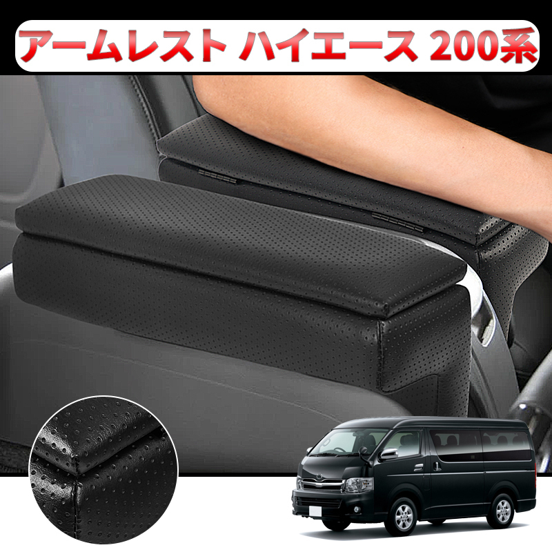 > アームレスト ハイエース 200系 1-7型 標準 ワイド 小物入れ付き 肘置き 肘掛け センターコンソール用 左右/2個 ブラック 内装 パーツ Y219