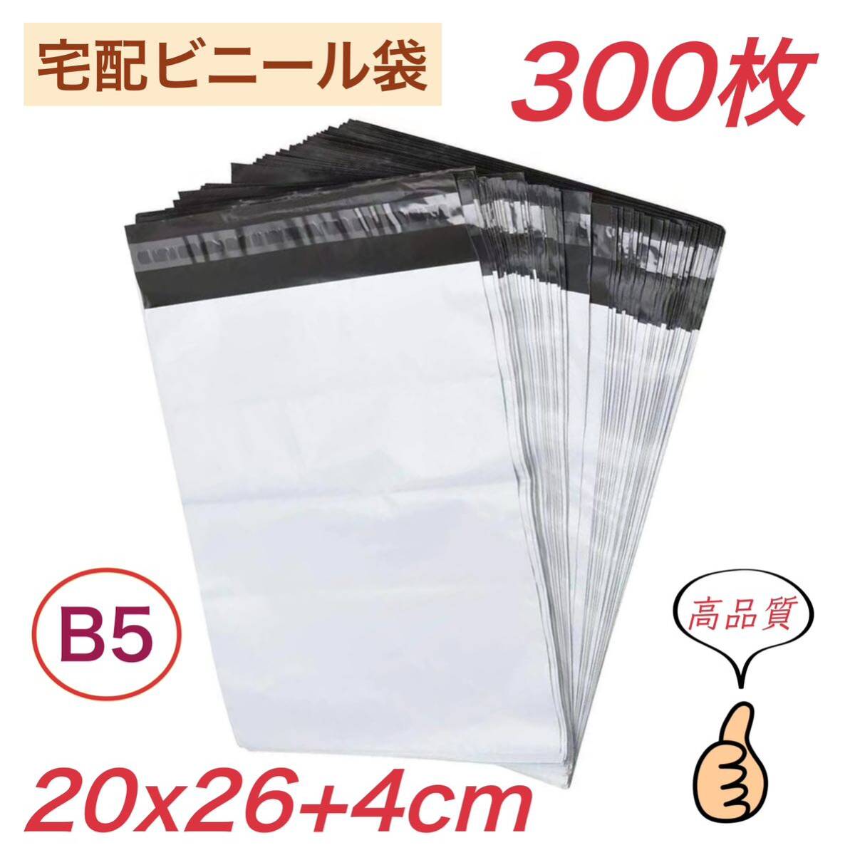 - 宅配ビニール袋 【 B5 300枚 】幅200mm×深さ260mm +フタ40mm 宅配袋 郵便袋 ポリ袋 防水袋 梱包袋 梱包資材 テープ付き 袋 業務用