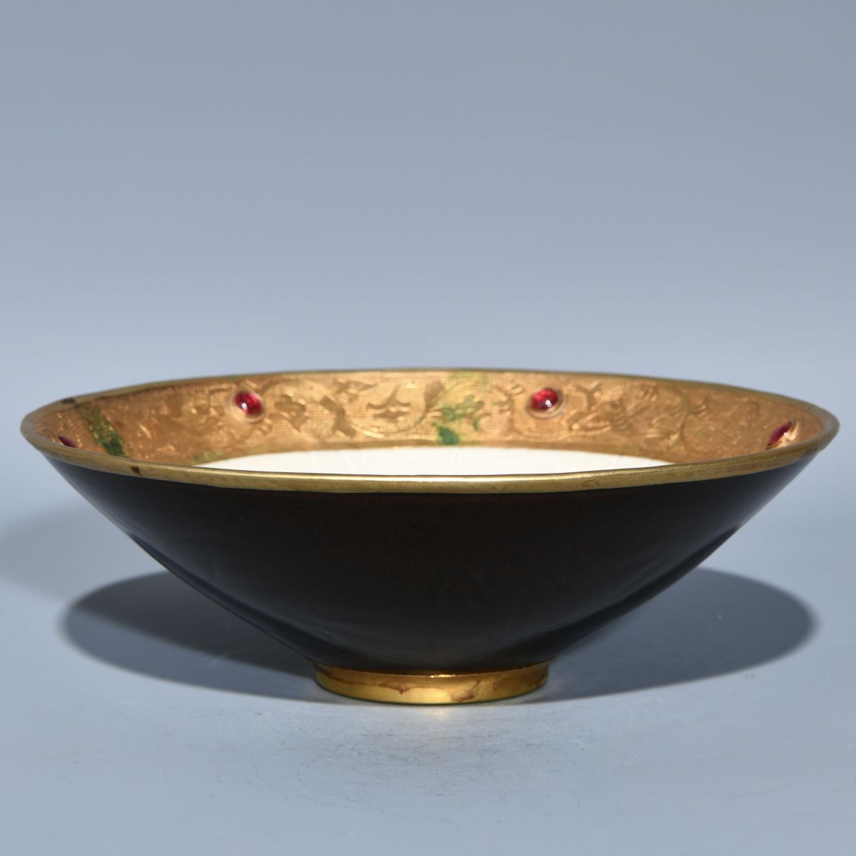 - 永し 宋時代 定窯 聚秀 金包口嵌寶石 刻花卉紋碗 古陶磁器 陶芸 皿 中国陶瓷器 唐瓷 置物擺件 古美術品 古賞物 収集 旧家蔵出 中国唐物 A2