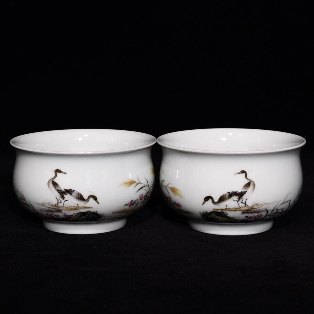 - 永し 清時代 大清雍正年製 粉彩花鳥紋杯 一対 古陶磁器 陶芸 皿 中国陶瓷器 唐瓷 置物擺件 古美術品 古賞物 収集 旧家蔵出 中国唐物 A249