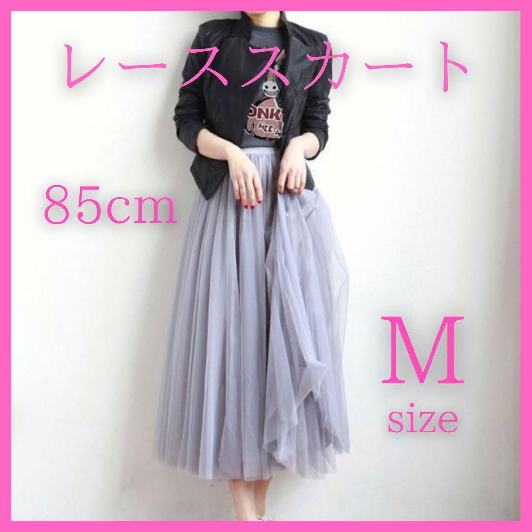 - M チュールスカート レース シフォン 可愛い ロング エレガント 大人 秋冬