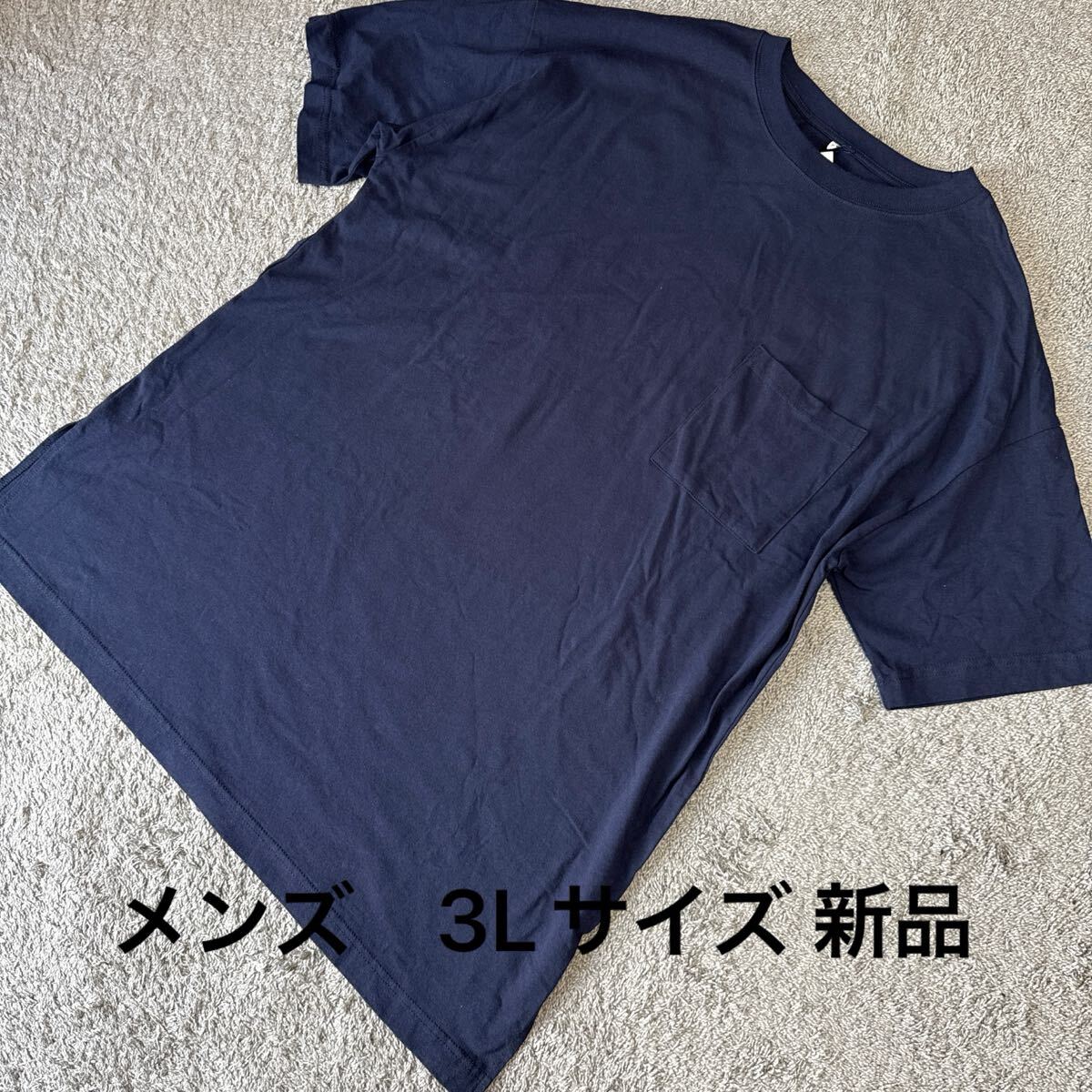 - 大きいサイズ メンズ ポケット付き無地シンプル半袖Tシャツ紺3L★ゆうパケット配送可能★新品36