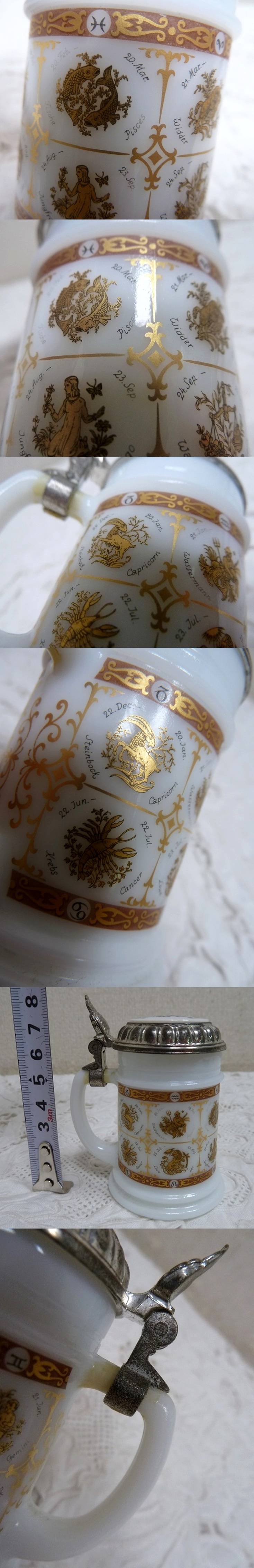 - (☆BM)ドイツ製 BMF/N ミルクガラス ビアジョッキ型 ミルクピッチャー 星座 アンティーク調 レトロ さそり座 茶器 ティー