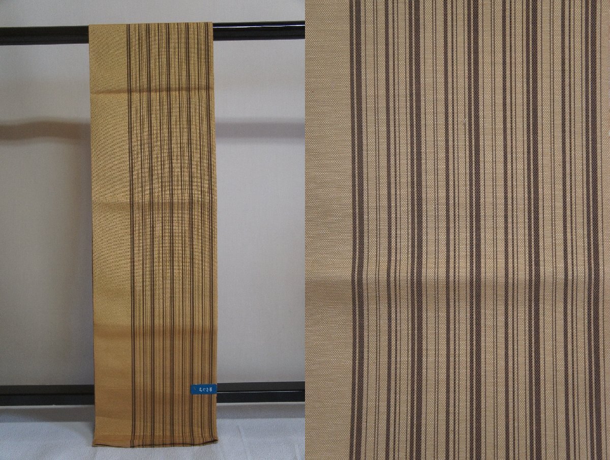- 化繊「ちぐさ帯」梅谷渋色地焦げ茶色縞模様七寸名古屋帯[N16478]