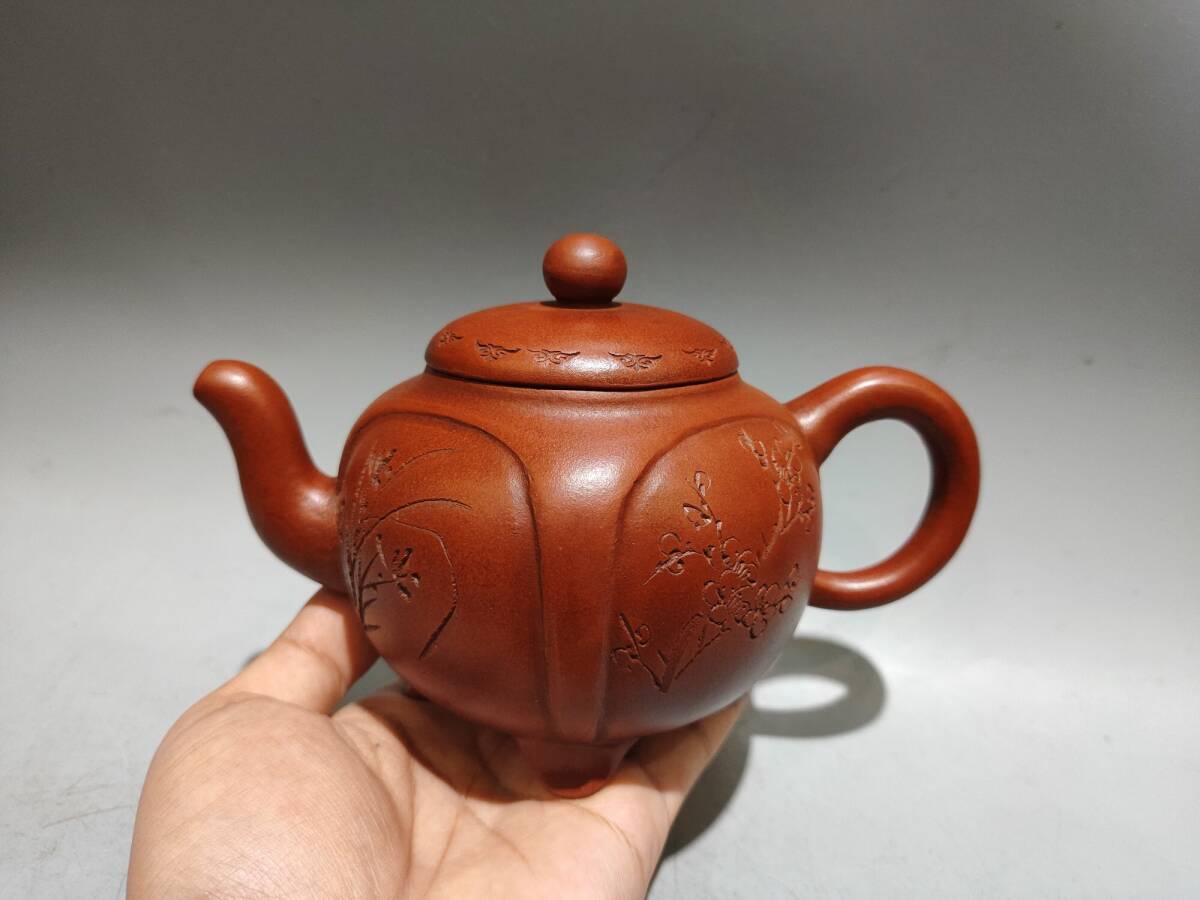 - 【超珍館蔵】紫砂壺 梅蘭竹菊壺 王南林款 紅泥 茶具 茶道品 置物 賞物 古賞物 古董品 古美術品 時代物 旧家蔵出 稀少珍蔵品