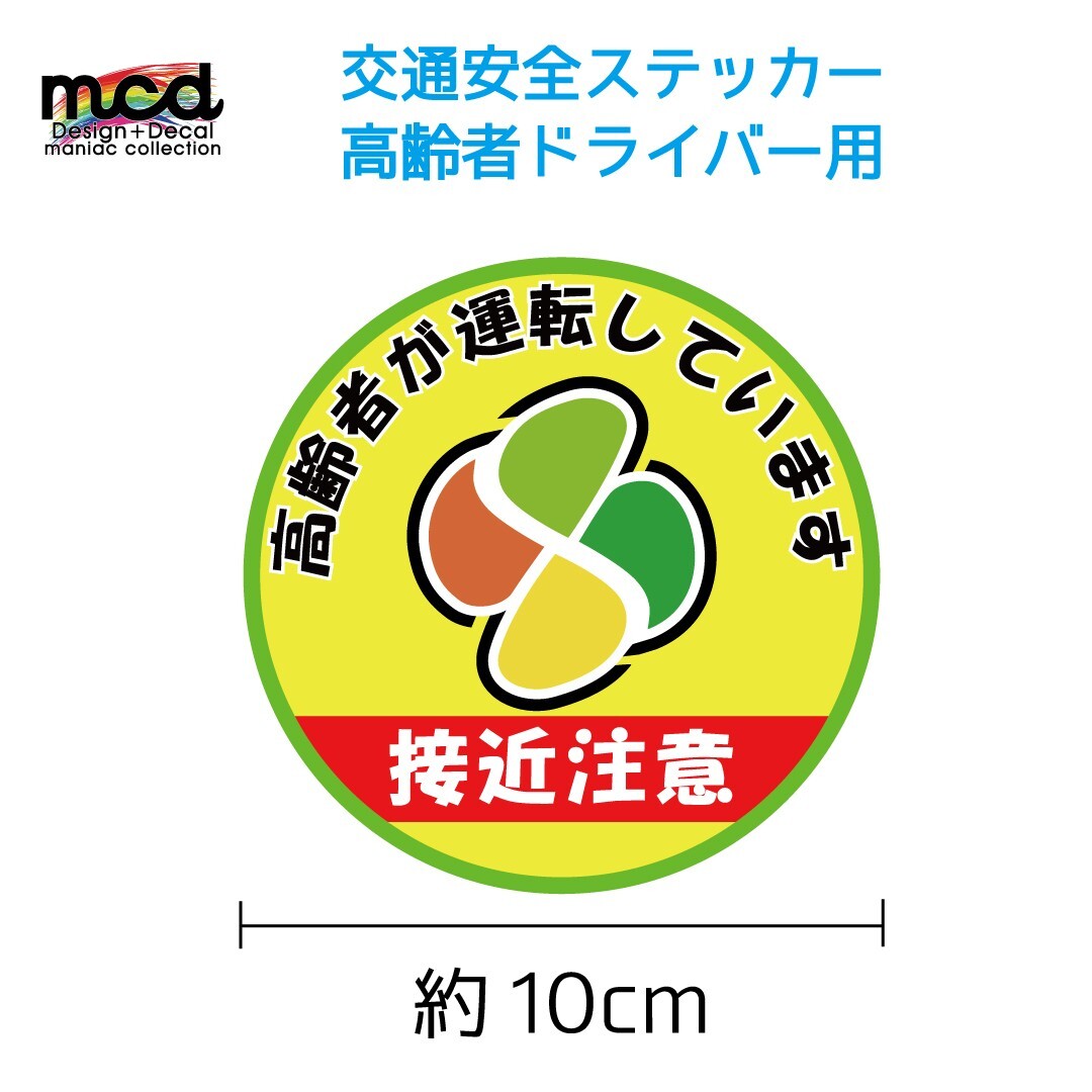 - 「接近注意」(黄色) 10cm 安全運転 高齢者マーク 高齢ドライバーに ステッカー 交通安全 煽り防止